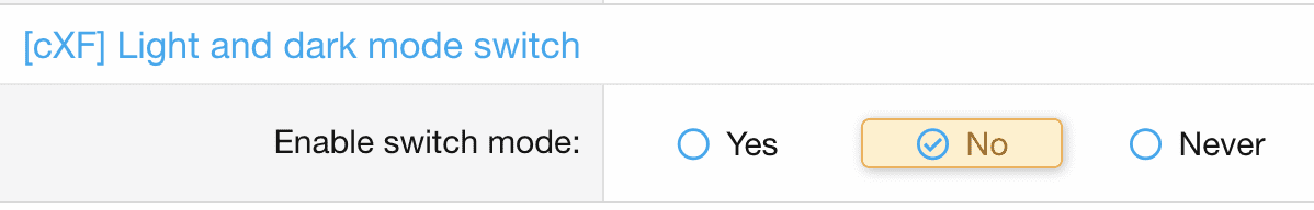 - Перейдите в меню Options > [cXF] Light and dark mode switch> и установите идентификатор стиля (для светлого и темного стиля)