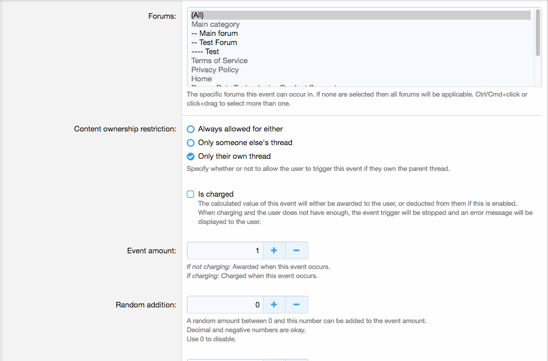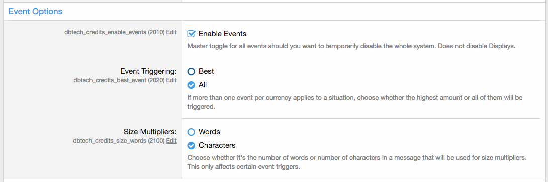 События-это то, как вы позволяете участникам зарабатывать кредиты. Вы можете создать столько событий из каждого из триггеров событий, сколько захотите.