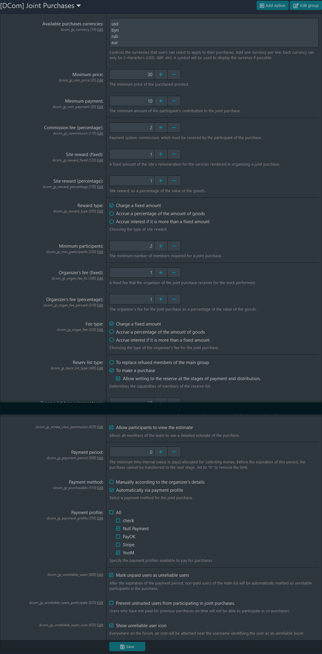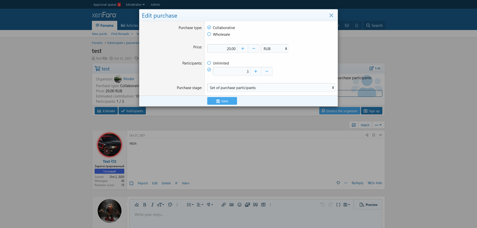 Этот плагин позволит вам организовывать совместные покупки на вашем форуме.