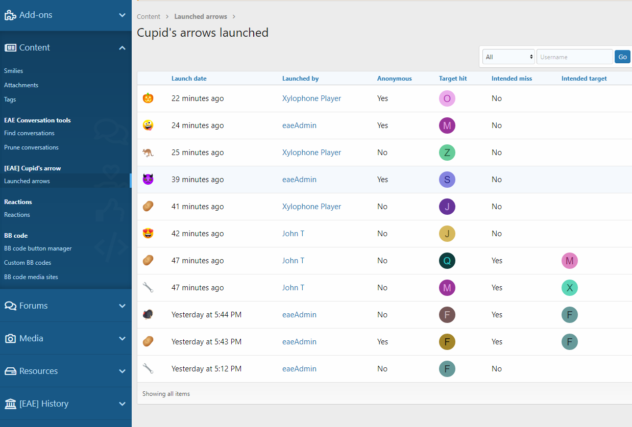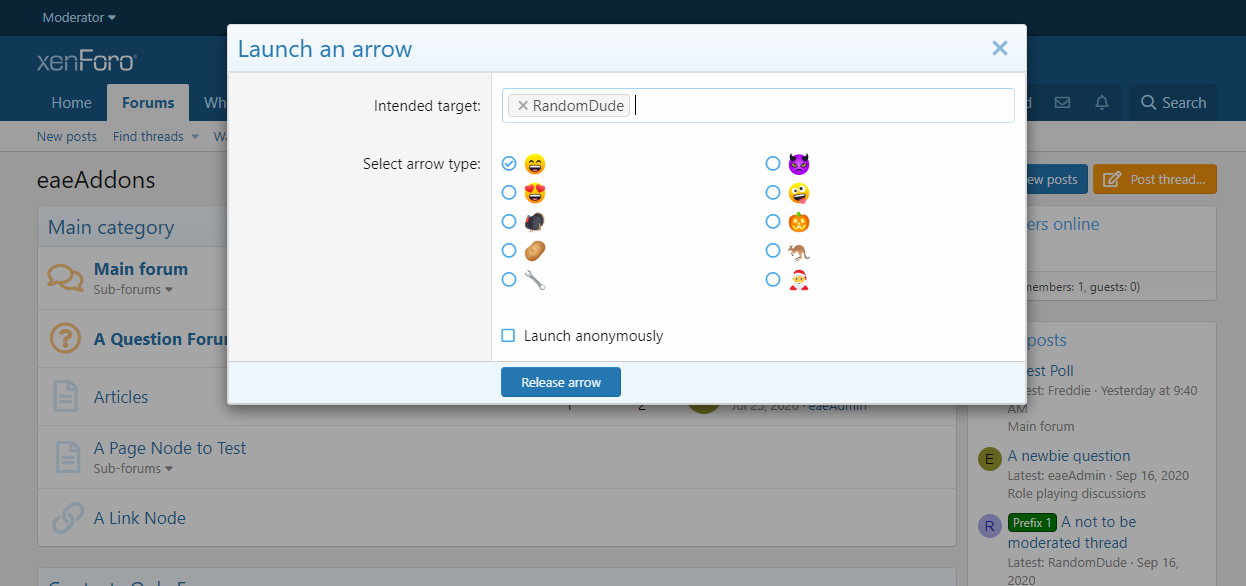 Предоставляет вашим пользователям возможность запускать эмодзи «стрелы» в других пользователей. Если опция установлена, они могут выбрать запуск анонимно. Если отправлено анонимно и пользователь имеет разрешение на обход конфиденциальности пользователя, он сможет увидеть, кто направил на него стрелку. Стрелки отображаются как предупреждения, поэтому, если целевой участник решит отключить предупреждения для этой настройки, он не будет уведомлен о том, что они были нацелены (хотя это все еще логируется).