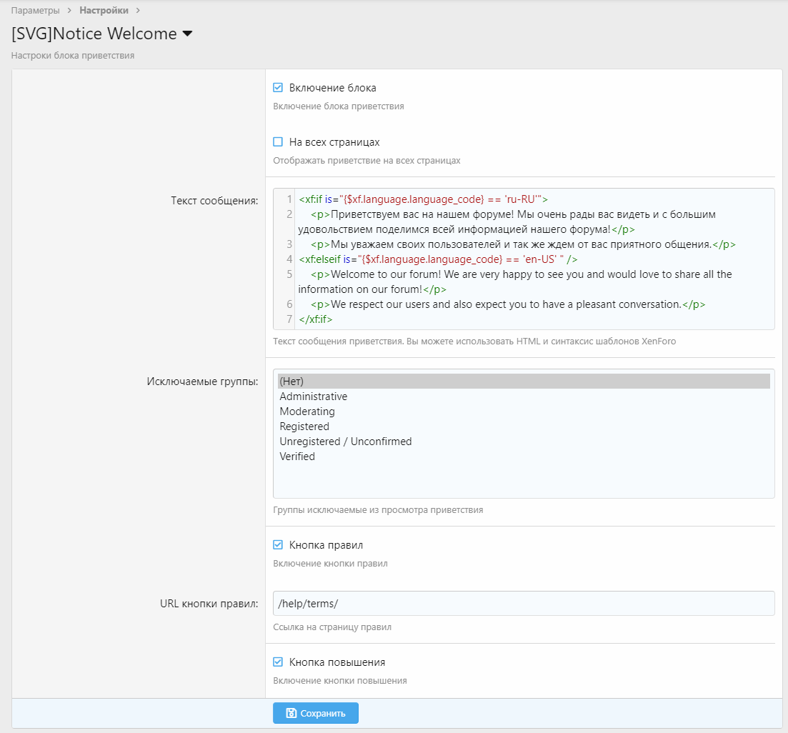 • Для сообщения можно использовать HTML и синтаксис xenforo