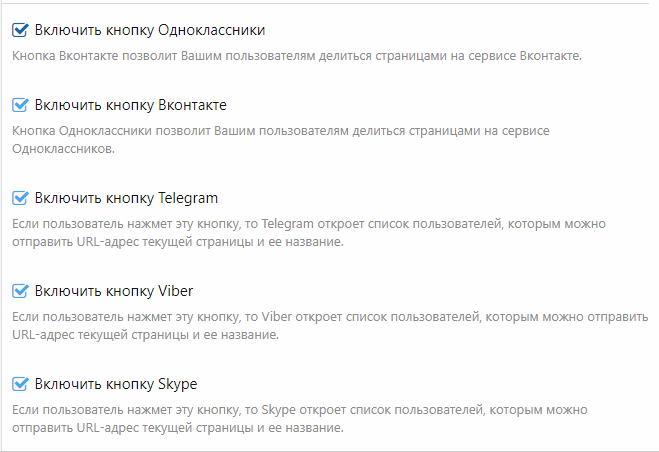 Дополнение добавляет в дефолтный виджет "Share this page" - "Поделиться этой страницей", добавлены кнопки: