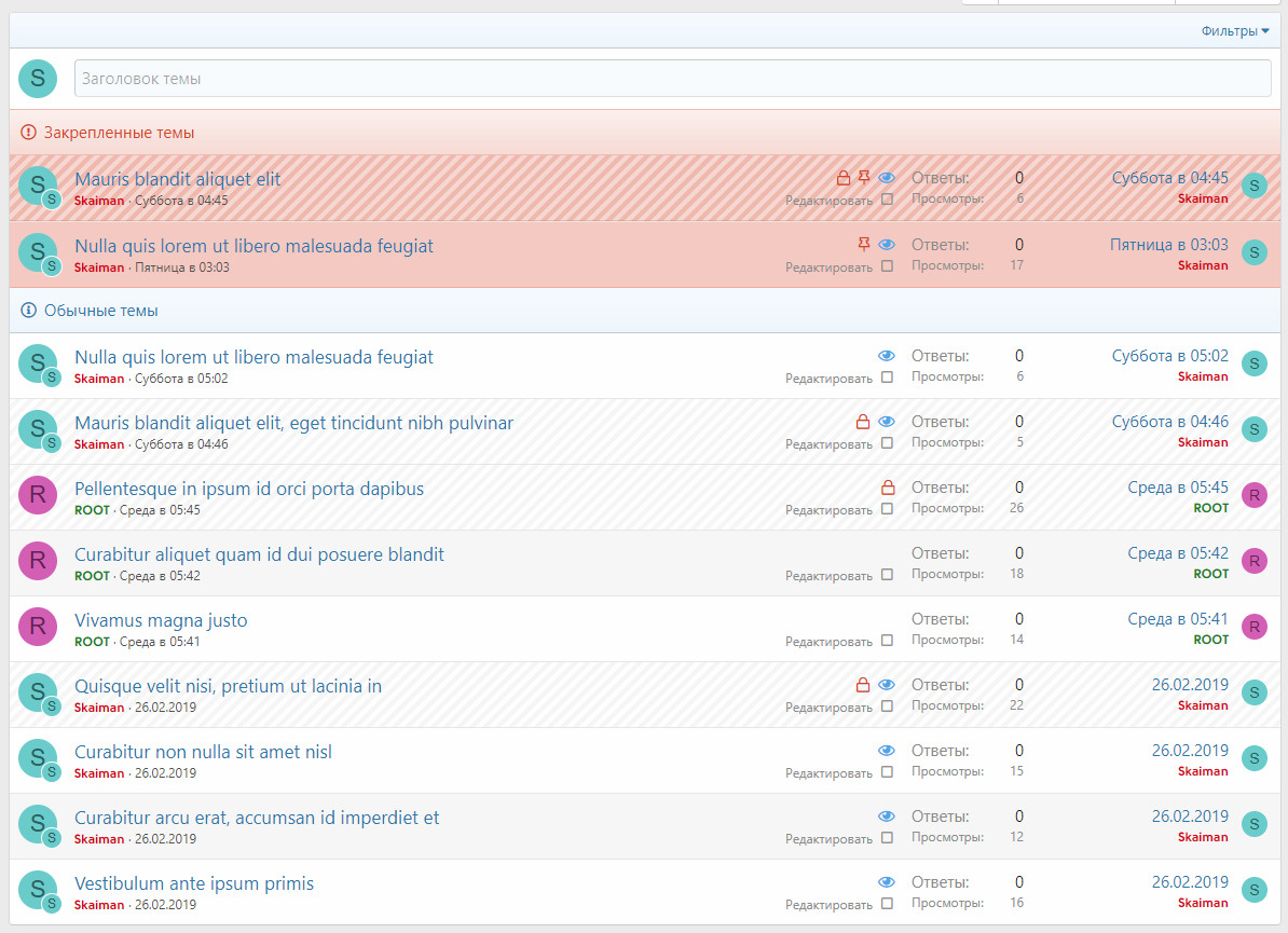 • Выделение закрепленных тем в списке тем, в новом и полном виджете