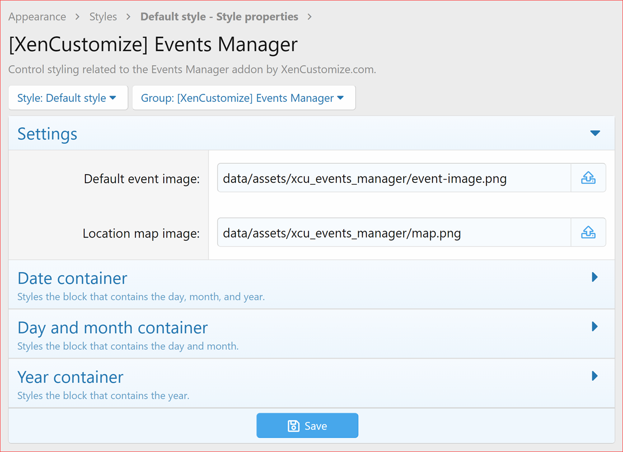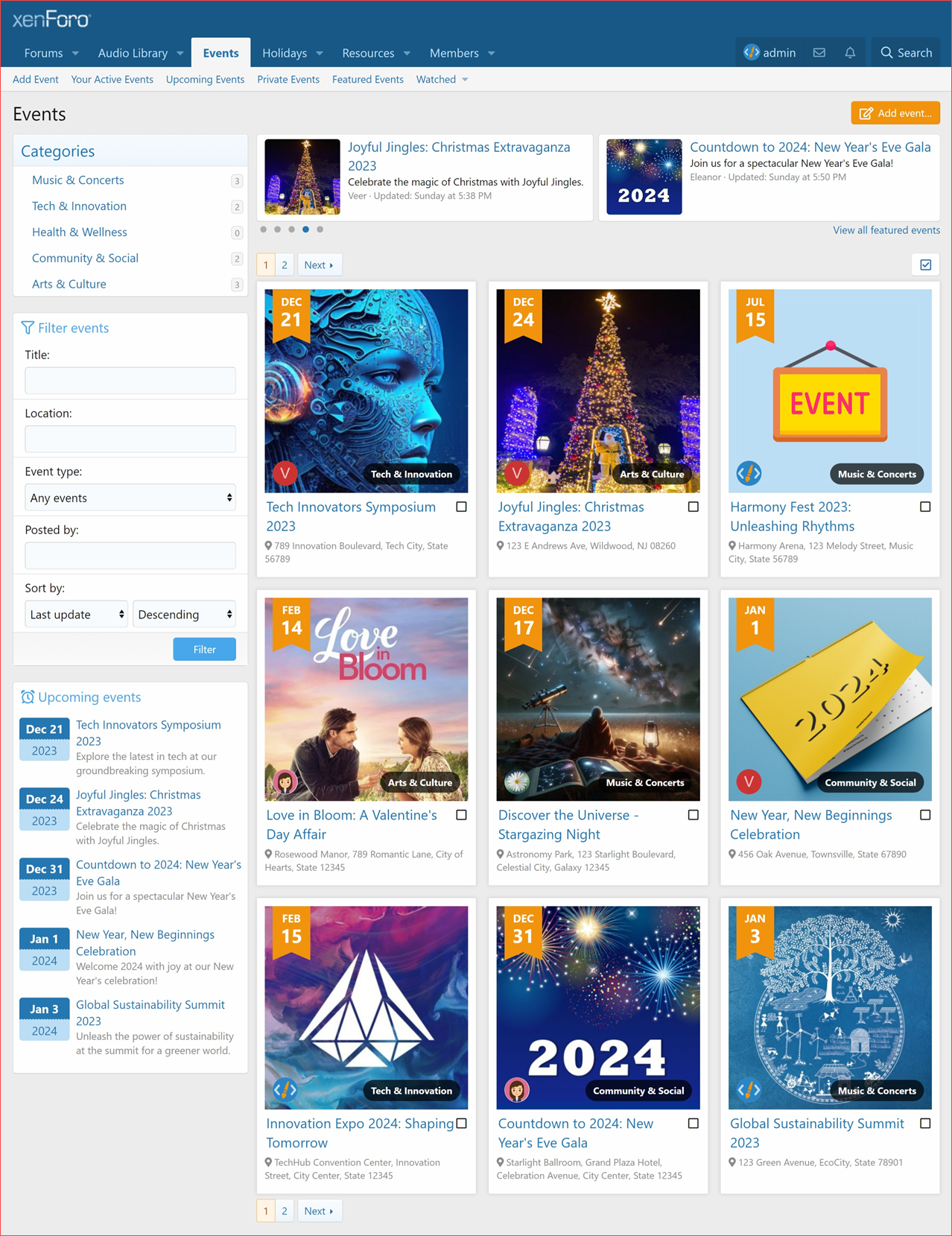 • Добавлена поддержка "Оптимизации изображений", специфичная для XF 2.3, как для "Изображения мероприятия", так и для "Баннера мероприятия". (версия 2.3.4)