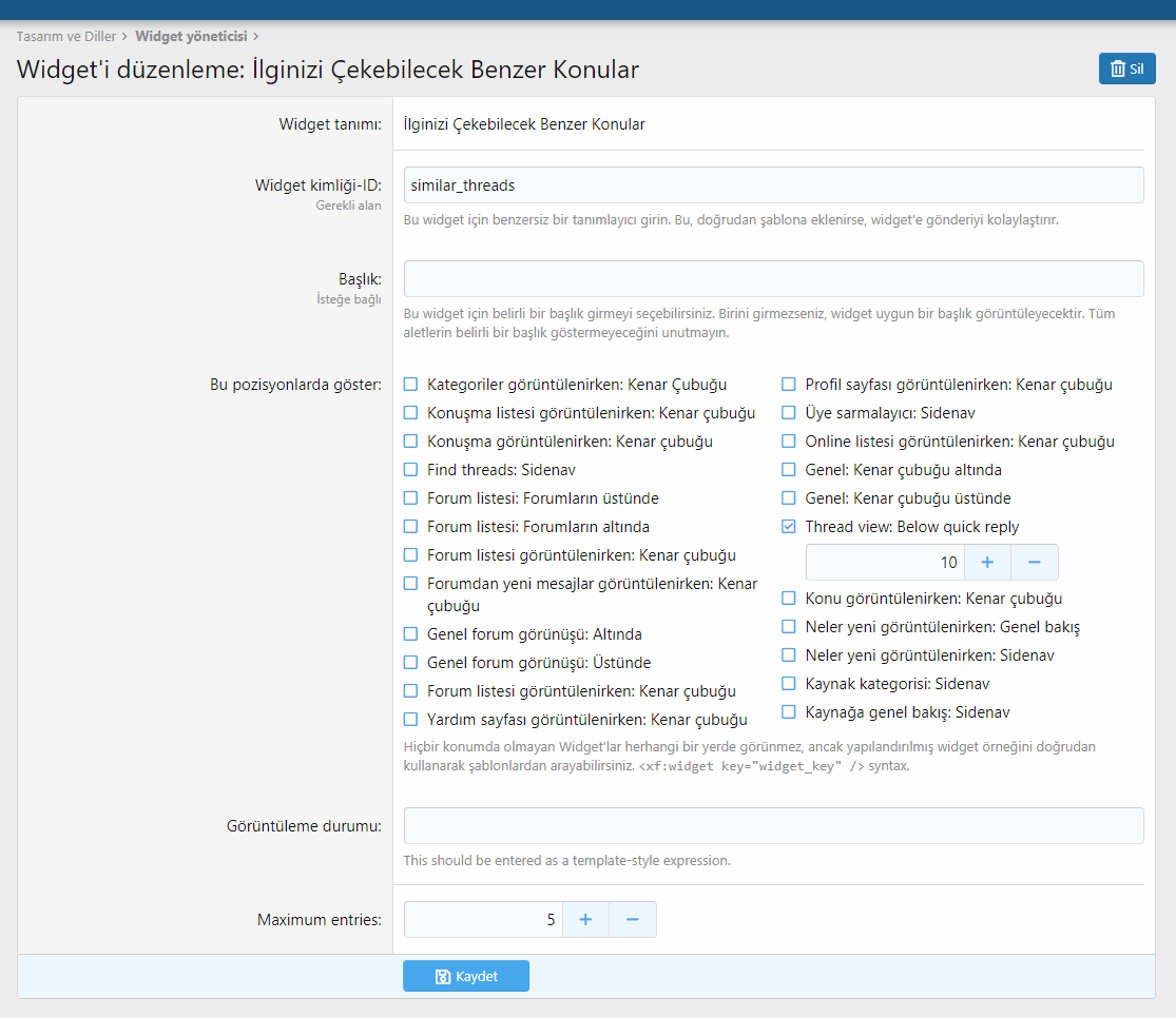 Укажите количество похожих тем, которые вы хотите отобразить в области администрирования виджета.