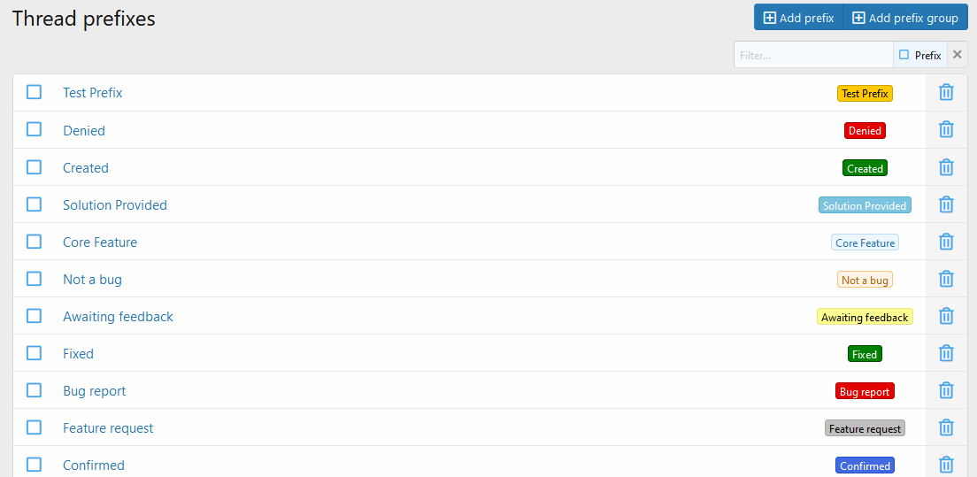 Простой аддон, который показывает вам префиксы в ACP, упрощает понимание того, что вы уже использовали. Это работает со всеми типами контента.