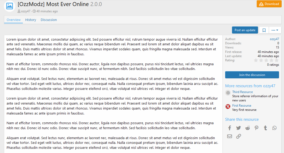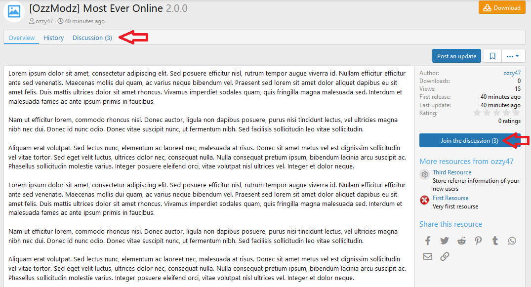 Простой плагин, показывающий количество сообщений в ветке обсуждения ресурса. У меня есть параметры для отображения на вкладке обсуждения и на кнопке присоединиться к обсуждению.